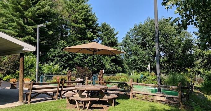Excellent course, great price, and free ice cream! Our family of four had such a fun time here last weekend! Our kids are 12 & 14 and enjoyed the course. It was a good balance of challenge and fun/ease for all of us. It is clean and well maintained, more of a natural aesthetic than cutesy/gimmicky windmills and such. There’s also a nice area with picnic tables & umbrellas and large grassy area that make it a great place to hangout with smaller children as well. Even my teen/tween were taking advantage of the space doing cartwheels. It’s a bit south of Lake George Village, so it was less crowded and that made it so much more enjoyable.